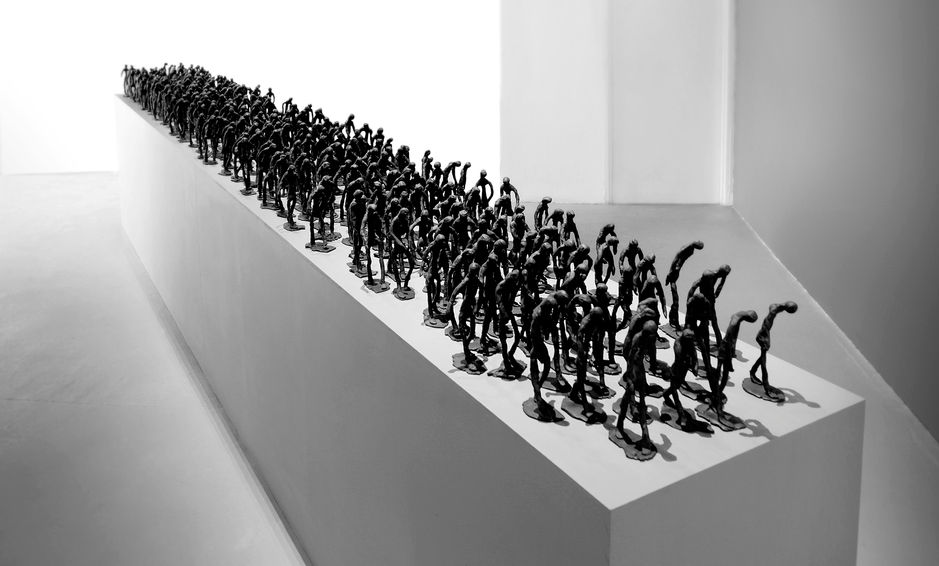 320 hardened plasticine figures, 450cm x 50cm x 70cm